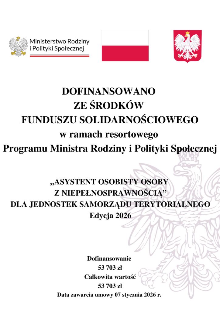 W dniu 14.08.2025 r. Minister Rodziny, Pracy i Polityki Społecznej ogłosił nabór wniosków na realizację Programu pn. „Asystent osobisty osoby z niepełnosprawnością” dla Jednostek Samorządu Terytorialnego − edycja 2026 finansowanego ze środków Funduszu Solidarnościowego.
